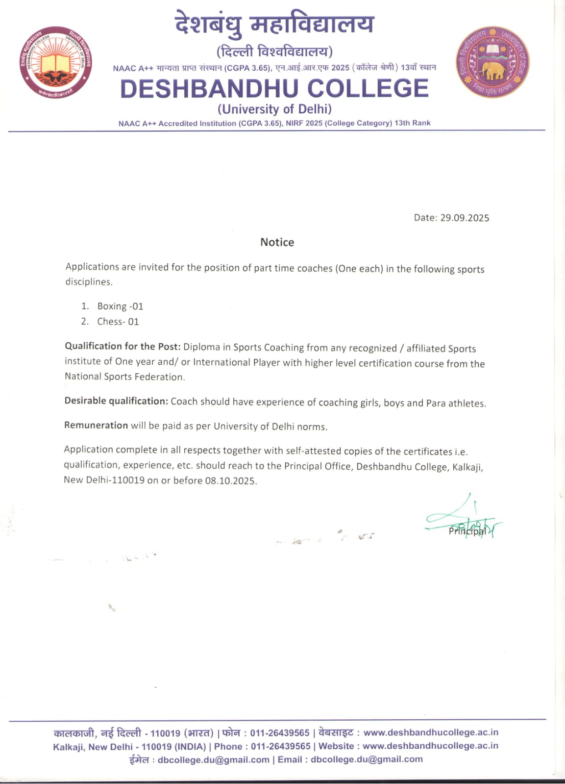 I extend a warm welcome to all the new and incoming students to Deshbandhu College. Our college is one of the premier institutes of the University of Delhi with A++ NAAC rating and 17 all India NIRF ranking. I feel proud to share that in a journey of more than seven decades, our College has provided an environment of excellence in academics along with holistic development of our students.